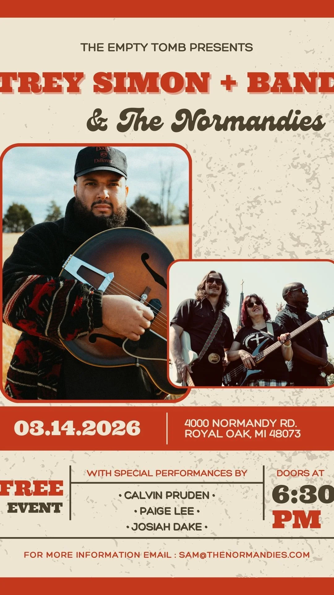 Detroit-based singer-songwriter Trey Simon delivers a soul-infused Americana sound shaped by faith, authenticity, and acoustic storytelling. Guided by what he calls a “Levitical heart posture,” Trey blends gritty Americana, soulful folk, and worship-rooted lyricism into music that connects deeply with listeners navigating real life and real faith.